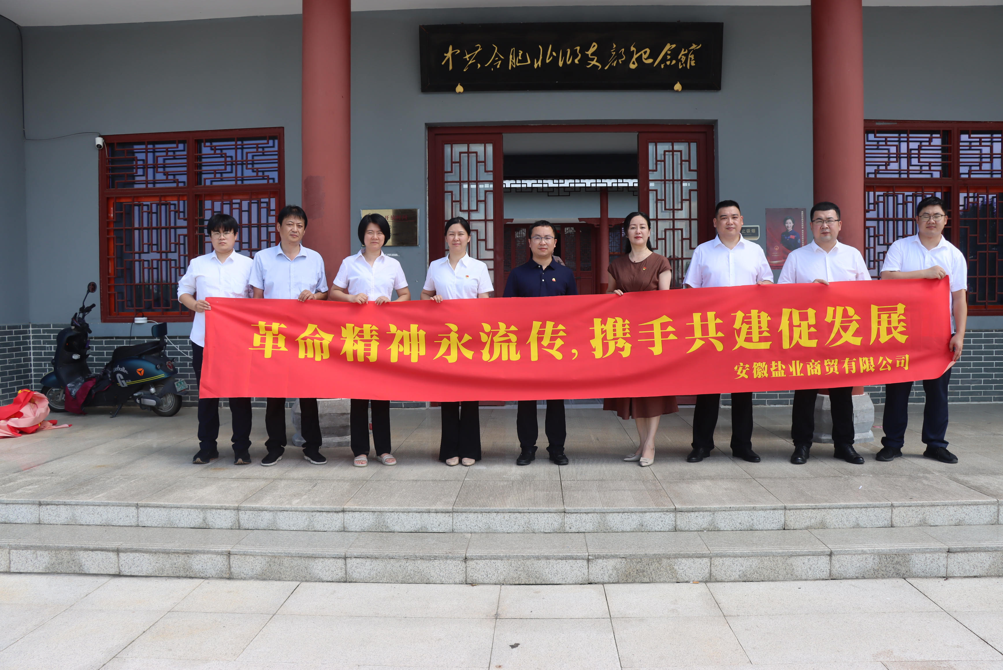 為全面、系統(tǒng)、深入學習習近平新時代中國特色社會主義思想,慶祝中國人民解放軍建軍96周年,7月27日上午,安徽鹽業(yè)商貿(mào)有限公司黨支部攜手貴州茅臺銷售公司駐外三支部赴中共合肥北鄉(xiāng)支部紀念館聯(lián)合開展黨建共建活動,接受紅色精神洗禮。