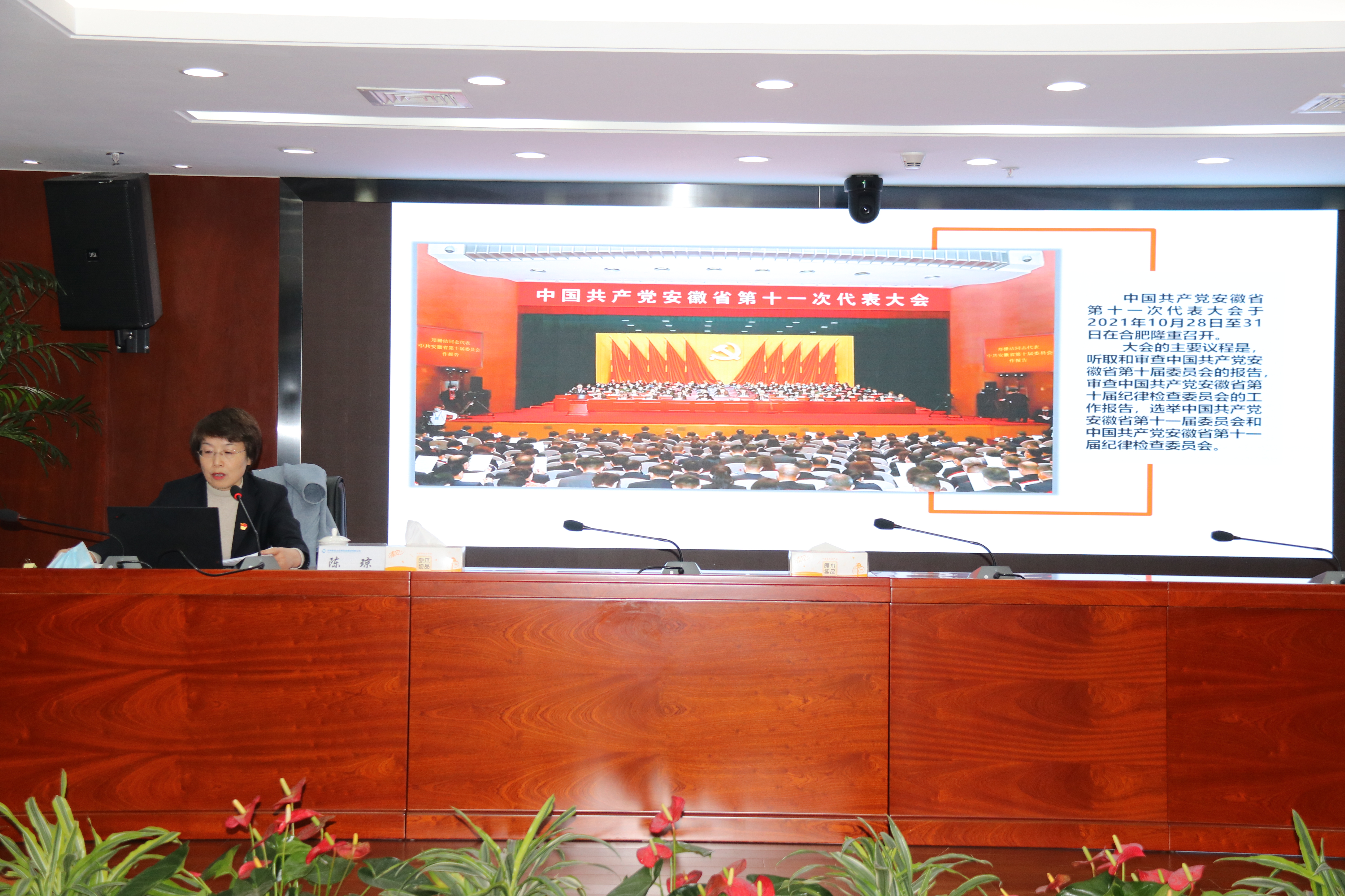 根據(jù)省國(guó)資委黨委統(tǒng)一部署,1月18日上午,學(xué)習(xí)貫徹省第十一次黨代會(huì)精神宣講報(bào)告會(huì)在集團(tuán)公司舉行。省國(guó)資委黨委宣講團(tuán)成員、徽商集團(tuán)黨委副書記、工會(huì)主席陳瓊作宣講報(bào)告,集團(tuán)公司黨委委員、副總經(jīng)理、職工董事顏?zhàn)谌A主持報(bào)告會(huì),集團(tuán)本部全體黨員、直屬(控股)公司黨員干部職工代表聆聽報(bào)告會(huì)。
