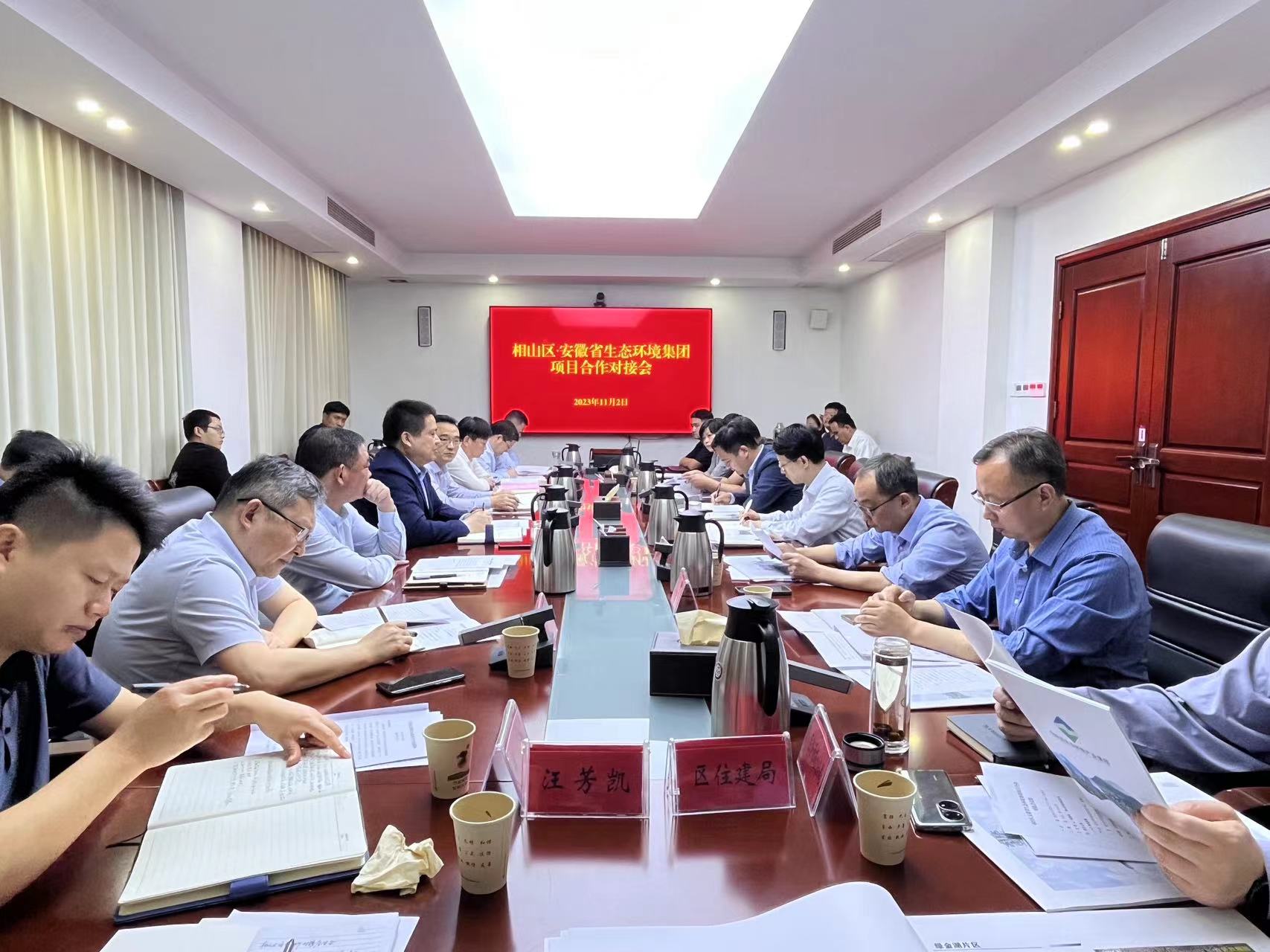 羅太忠對(duì)相山區(qū)熱情接待表示感謝,詳細(xì)介紹了集團(tuán)公司相關(guān)情況。他指出,近年來(lái)集團(tuán)公司圍繞省第十一次黨代會(huì)提出的“全省域、全過(guò)程、全方位加強(qiáng)生態(tài)文明建設(shè)”要求和省委十一屆五次全會(huì)提出的建設(shè)“生態(tài)強(qiáng)省”目標(biāo),深入推廣生態(tài)環(huán)境綜合治理“全域推進(jìn)”模式,將省直廳局的政策優(yōu)勢(shì)、地方政府的資源優(yōu)勢(shì)、金融機(jī)構(gòu)的資金優(yōu)勢(shì)、頭部企業(yè)的技術(shù)優(yōu)勢(shì)以及集團(tuán)的平臺(tái)優(yōu)勢(shì)進(jìn)行有效整合,受到了地方普遍歡迎和充分肯定。他表示,此次相山區(qū)主動(dòng)對(duì)接項(xiàng)目,充分體現(xiàn)了相山區(qū)對(duì)集團(tuán)公司的支持與信任,希望雙方進(jìn)一步加強(qiáng)溝通,發(fā)揮各自優(yōu)勢(shì),特別是圍繞皖北群眾喝好水工程、“秸稈變?nèi)狻惫こ?,以及在生態(tài)環(huán)境綜合治理、城市更新等項(xiàng)目合作成立專班,加快項(xiàng)目落地,為推進(jìn)美麗相山建設(shè)貢獻(xiàn)力量。