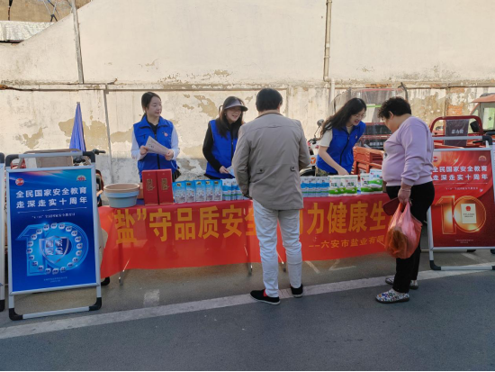 六安鹽業(yè)公司黨員志愿者走進開發(fā)區(qū)小廟農(nóng)貿(mào)集市,設(shè)立普法宣傳點,向居民宣傳國家安全相關(guān)知識,普及食鹽安全知識。