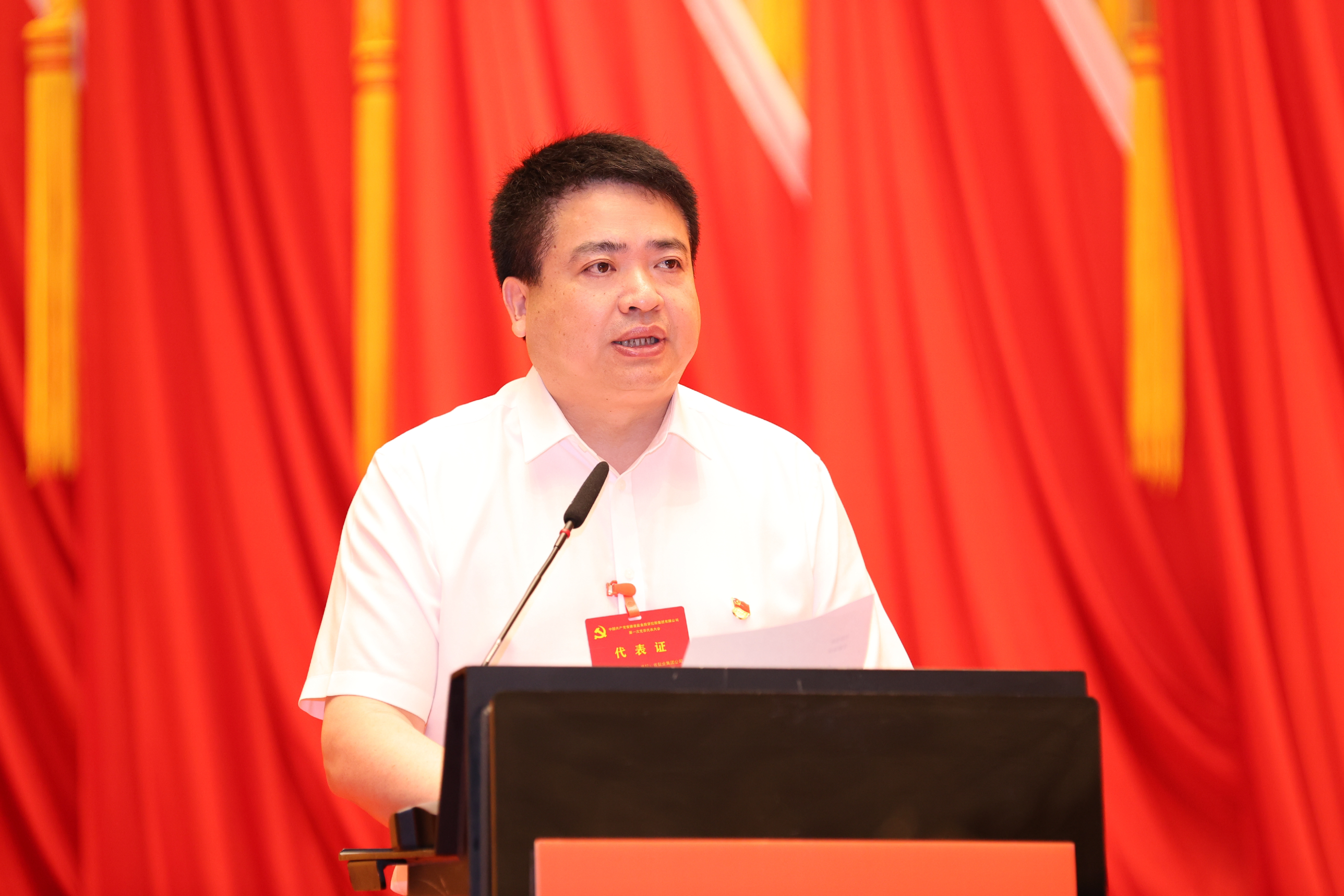 會場洋溢著莊重熱烈的氛圍,主席臺中央金色的黨徽在紅旗簇擁下熠熠生輝,會場內(nèi)懸掛著“全面推動戰(zhàn)略轉(zhuǎn)型 勇當綠色發(fā)展先鋒 為打造長三角標桿生態(tài)環(huán)境產(chǎn)業(yè)集團而不懈奮斗”的巨幅標語,格外醒目。