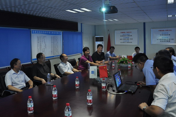 詹先豪一行聽(tīng)取中建八局項(xiàng)目經(jīng)理就有關(guān)工程進(jìn)度匯報(bào)