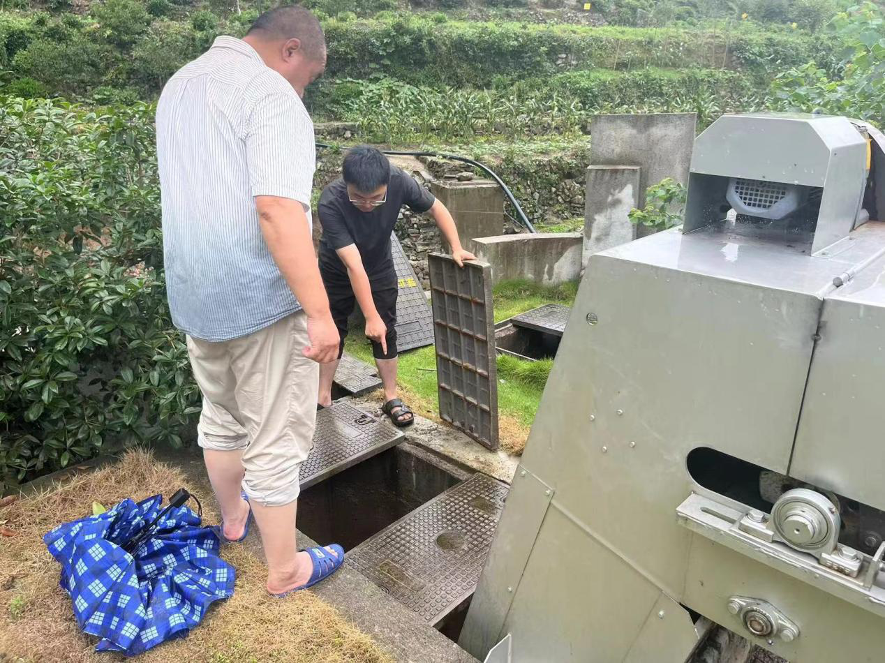 年近六十的楊朝暉是安徽環(huán)境科技集團(tuán)工程管理部高級(jí)經(jīng)理,五月以來(lái)便一直在長(zhǎng)陔地區(qū)開(kāi)展污水管網(wǎng)提升改造工作。汛情來(lái)臨之前,身為黃山本地人的他原本可以提前回到家中,照顧自己年逾九十的雙親,面對(duì)親情與責(zé)任的取舍,楊朝暉毅然決然選擇留守長(zhǎng)陔一線(xiàn)。6月20日,在長(zhǎng)陔鄉(xiāng)當(dāng)?shù)赝ㄓ嵕W(wǎng)絡(luò)故障,無(wú)法聯(lián)系外界的情況下,楊朝暉第一時(shí)間對(duì)長(zhǎng)陔污水處理站和長(zhǎng)陔鄉(xiāng)污水管網(wǎng)進(jìn)行排查,檢查農(nóng)戶(hù)接戶(hù)管是否存在脫落、破損情況,并對(duì)部分村民做好解釋溝通工作,對(duì)能修理疏通的立即修理疏通,不能立即處理的,他也詳細(xì)記錄相應(yīng)位置和損壞程度,以便災(zāi)后第一時(shí)間開(kāi)展修復(fù)重建工作。