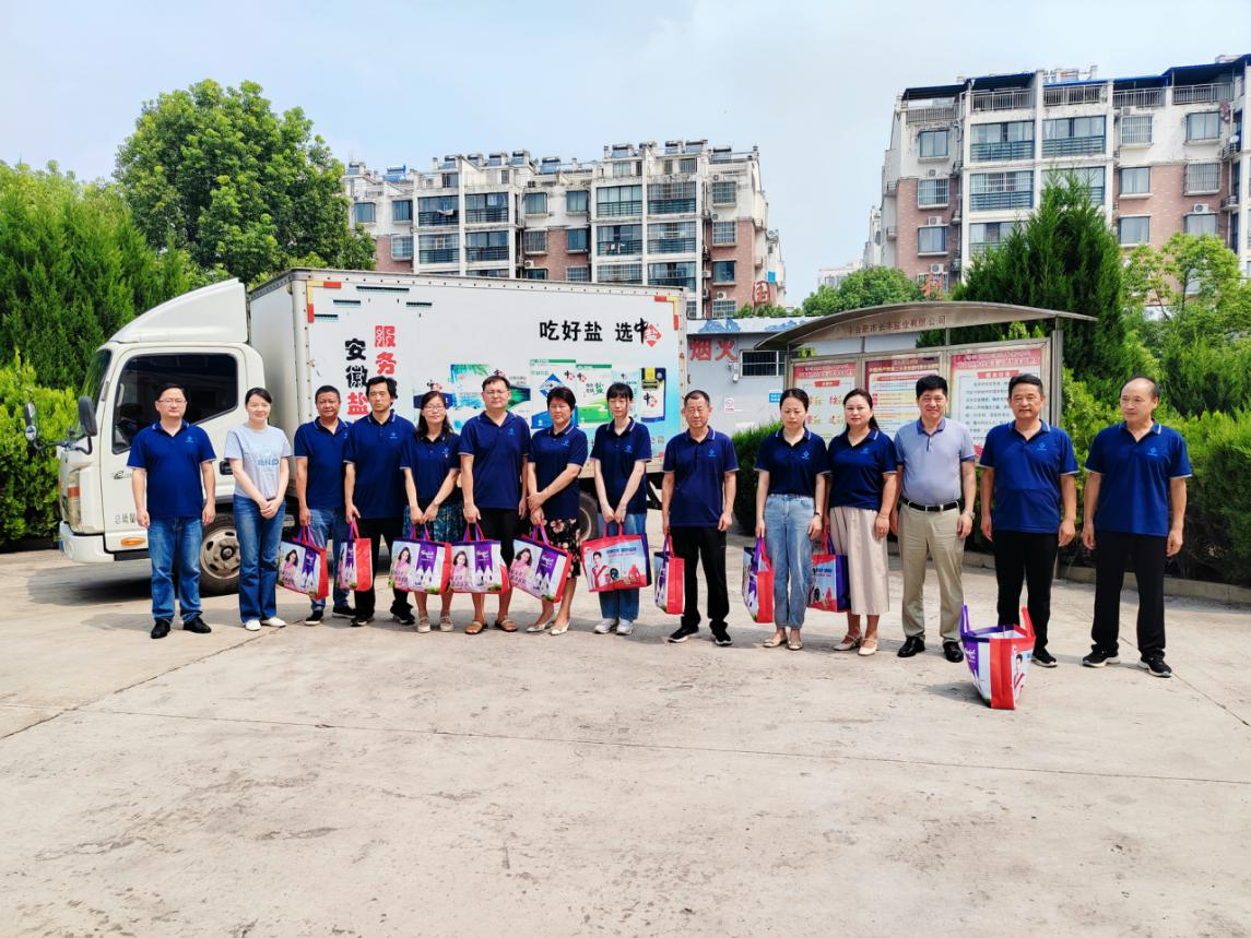 炎炎夏日送清涼,滴滴關(guān)懷暖人心,一份清涼一份關(guān)懷。8月11日安徽鹽業(yè)發(fā)展有限公司工會組織夏日送清涼慰問活動。公司工會主席曹明新帶隊前往長豐、淮南鹽業(yè)公司向一線營銷人員進行現(xiàn)場慰問,并送去防暑降溫物資。