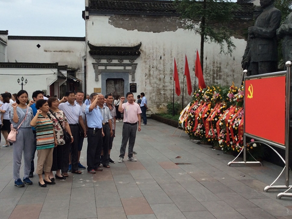 7月1日上午,在中國共產(chǎn)黨建黨95周年之際,績溪縣公司全體黨員及入黨積極分子在新四軍整編地、東進抗日出征地─巖寺─新四軍軍部舊址紀念館前,緬懷革命先烈,開展集體莊嚴宣誓,共同慶祝黨的生日。