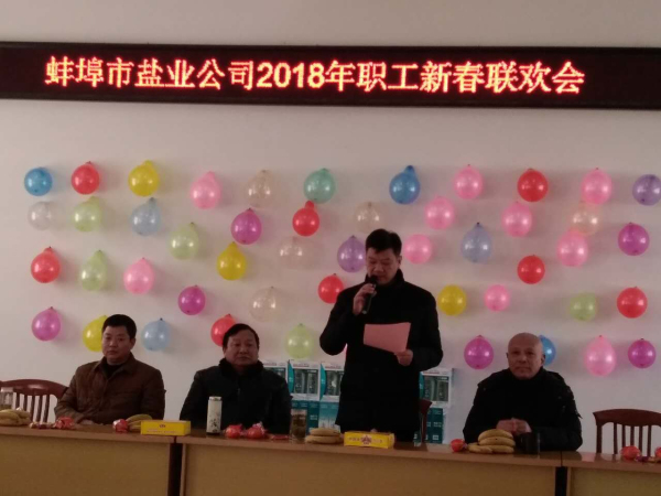 公司黨委書記邱軍做開場致辭。他說,過去的2017年蚌埠鹽業(yè)砥礪前行,艱苦奮斗,新的一年更需要大家團結(jié)一心,用拼搏和汗水迎接新的挑戰(zhàn)和機遇,同創(chuàng)共贏。他代表公司黨委向廣大員工致以崇高的敬意和新春最美好的祝愿。