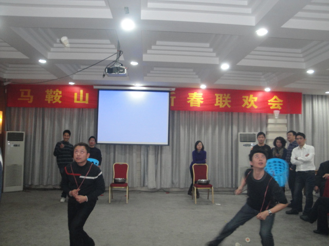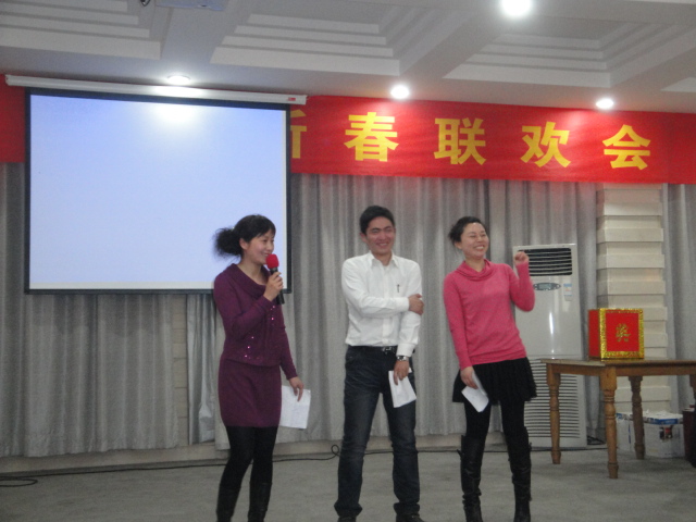 聯(lián)歡會(huì)在歡快的春節(jié)序曲中開(kāi)始,首先是公司經(jīng)理孫家倫發(fā)表了熱情洋溢的講話,感謝所有員工在過(guò)去的一年里所付出努力,表示了對(duì)職工家屬的熱烈歡迎,同時(shí)號(hào)召大家在新的一年里要繼續(xù)給力,爭(zhēng)取實(shí)現(xiàn)公司的全面工作再上一個(gè)新臺(tái)階,公司工會(huì)主席王本琴帶領(lǐng)四位工會(huì)委員集體給大家拜年。此次聯(lián)歡會(huì)不僅有二重唱、舞蹈、朗頌等文藝表演,還有公司員工被分成兩隊(duì)的猜成語(yǔ)、夾汽球跑、扔羽毛球等競(jìng)技比賽項(xiàng)目,另外穿插參與游戲、摸獎(jiǎng)等環(huán)節(jié),整場(chǎng)聯(lián)歡會(huì)暖意融融,高潮迭起。由員工及家屬表演的詼諧舞蹈《玫瑰》將氣氛推向高潮,歌聲、笑聲、歡呼聲在這里聚集,友情、感情、豪情在這一刻升華。