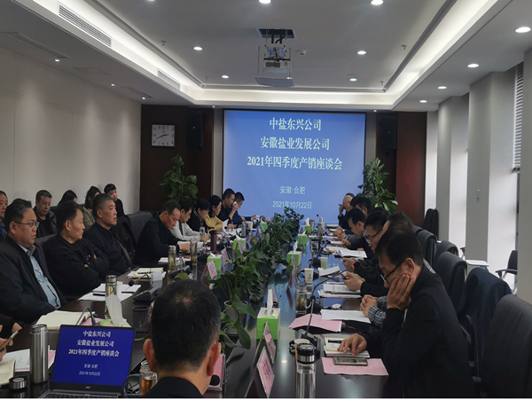 10月22日-23日,安徽鹽業(yè)發(fā)展公司2021年四季度經(jīng)營工作推進(jìn)會暨產(chǎn)銷座談會在合肥召開。省鹽業(yè)集團(tuán)公司黨委委員、副總經(jīng)理王奇,中鹽東興營銷中心總經(jīng)理王朝忠,發(fā)展公司、各市公司及生產(chǎn)企業(yè)相關(guān)人員參加會議。