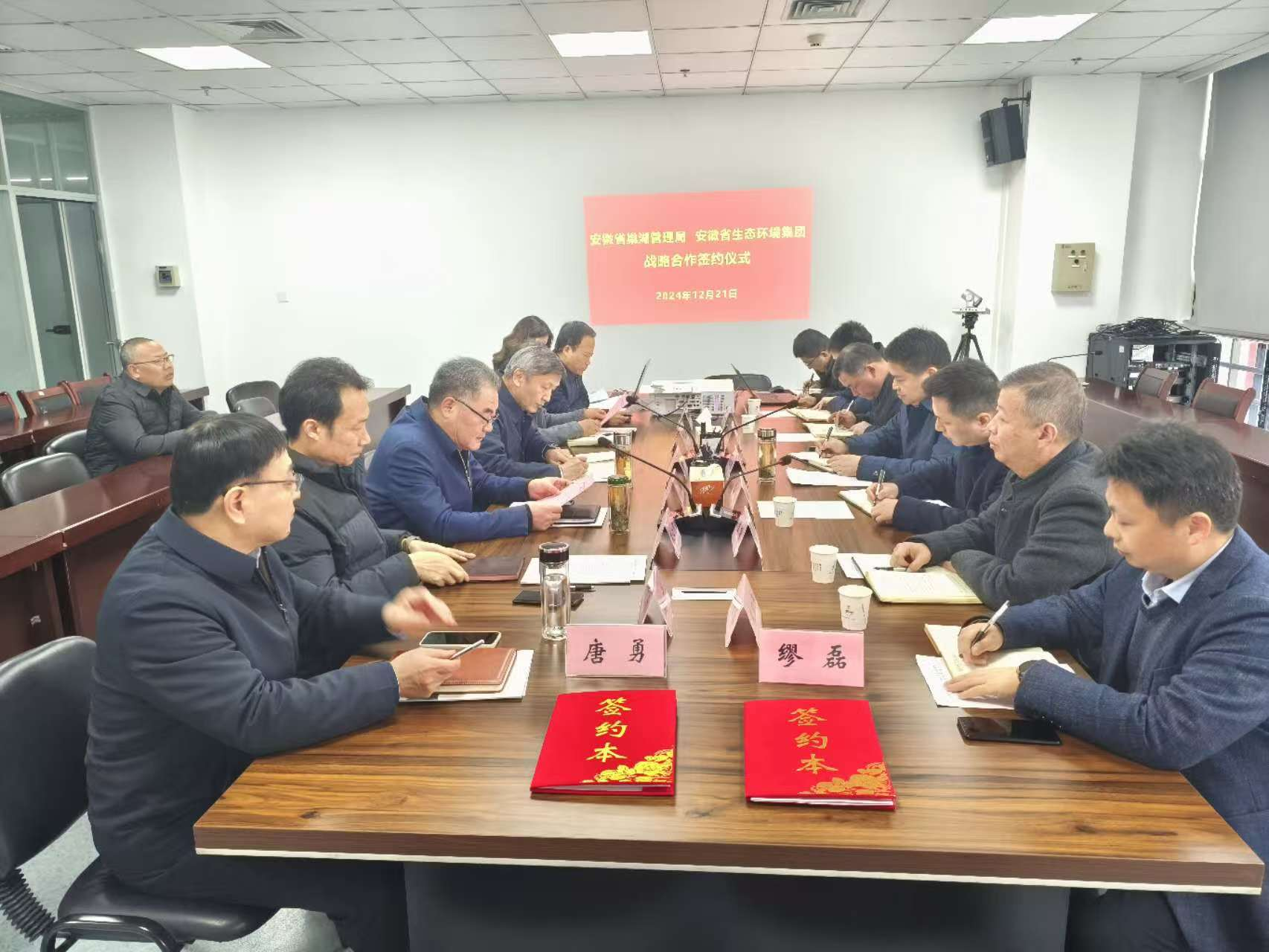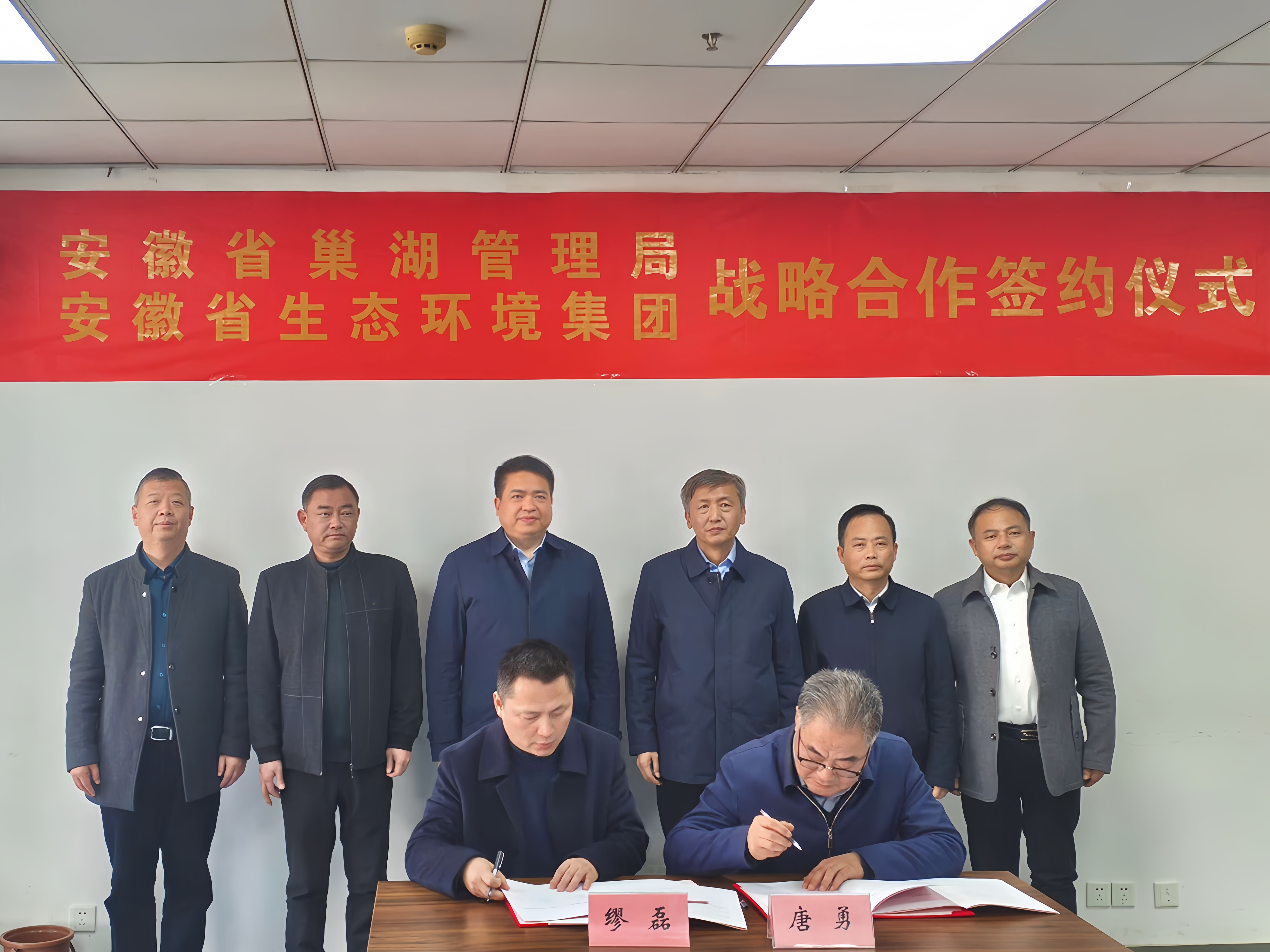 集團(tuán)公司黨委委員、副總經(jīng)理繆磊,省巢湖管理局黨委委員、副局長(zhǎng)唐勇代表雙方簽訂戰(zhàn)略合作協(xié)議,環(huán)境科技集團(tuán)、生態(tài)修復(fù)公司以及雙方有關(guān)部門(mén)負(fù)責(zé)同志參加簽約儀式。