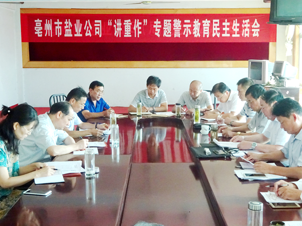 9月14日上午,亳州市鹽業(yè)公司黨委召開“講政治、重規(guī)矩、作表率”專題警示教育民主生活會(huì)。省公司黨委書記詹先豪率相關(guān)處室負(fù)責(zé)人參加會(huì)議。亳州市公司黨委書記李文俊主持會(huì)議,亳州市公司黨委全體成員參加會(huì)議,所屬三縣公司黨政主要負(fù)責(zé)人及市公司本部支部書記列席會(huì)議。