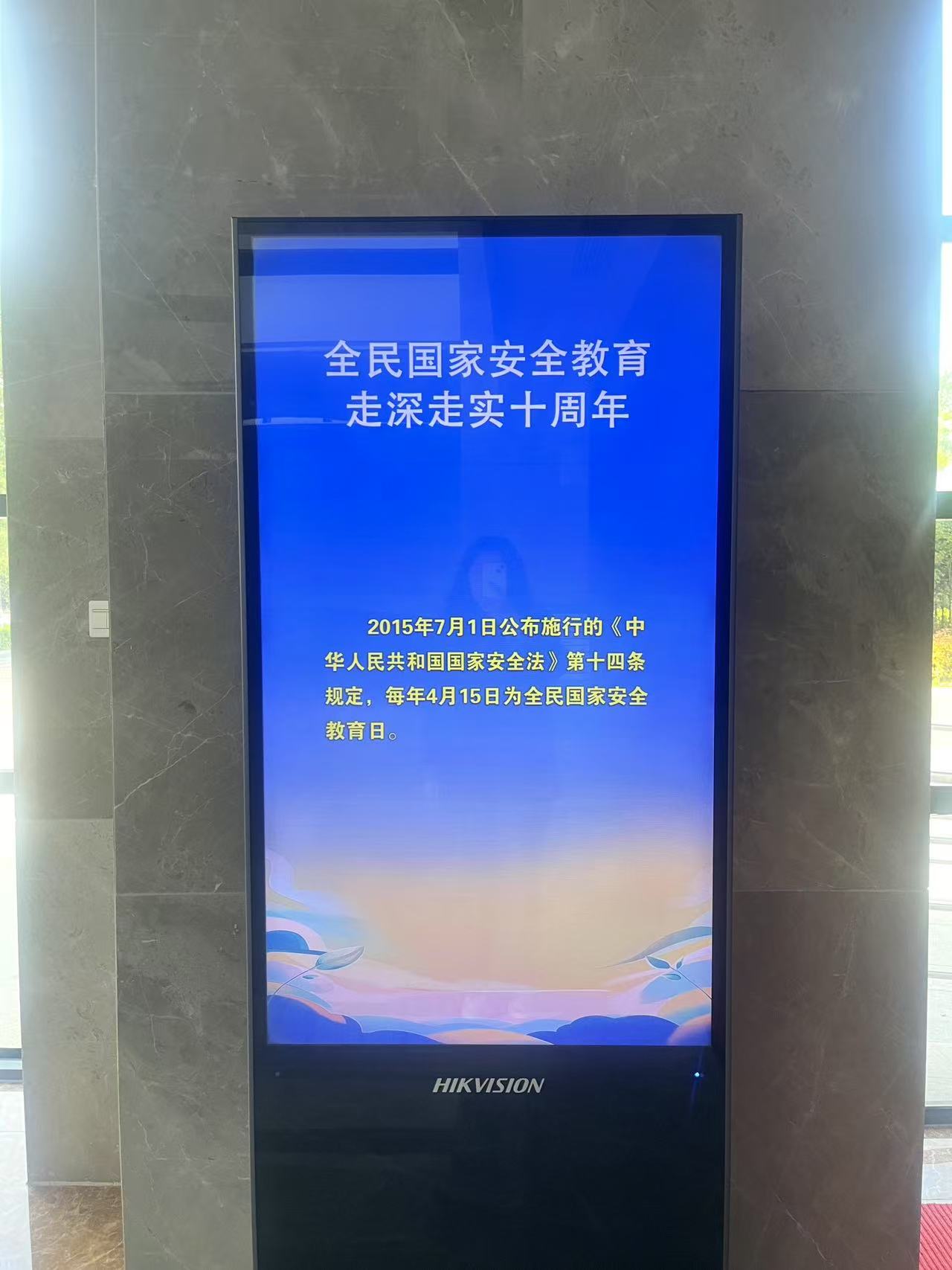 環(huán)境科技集團(tuán)在辦公區(qū)域張貼“全民國家安全教育 走深走實(shí)十周年”主題海報(bào),以醒目圖文傳遞國家安全核心要義;運(yùn)用LED顯示屏播放“4.15全民國家安全教育日”PPT,一樓大廳連續(xù)滾動(dòng)播放宣傳海報(bào)及警示案例,覆蓋員工日常辦公動(dòng)線。