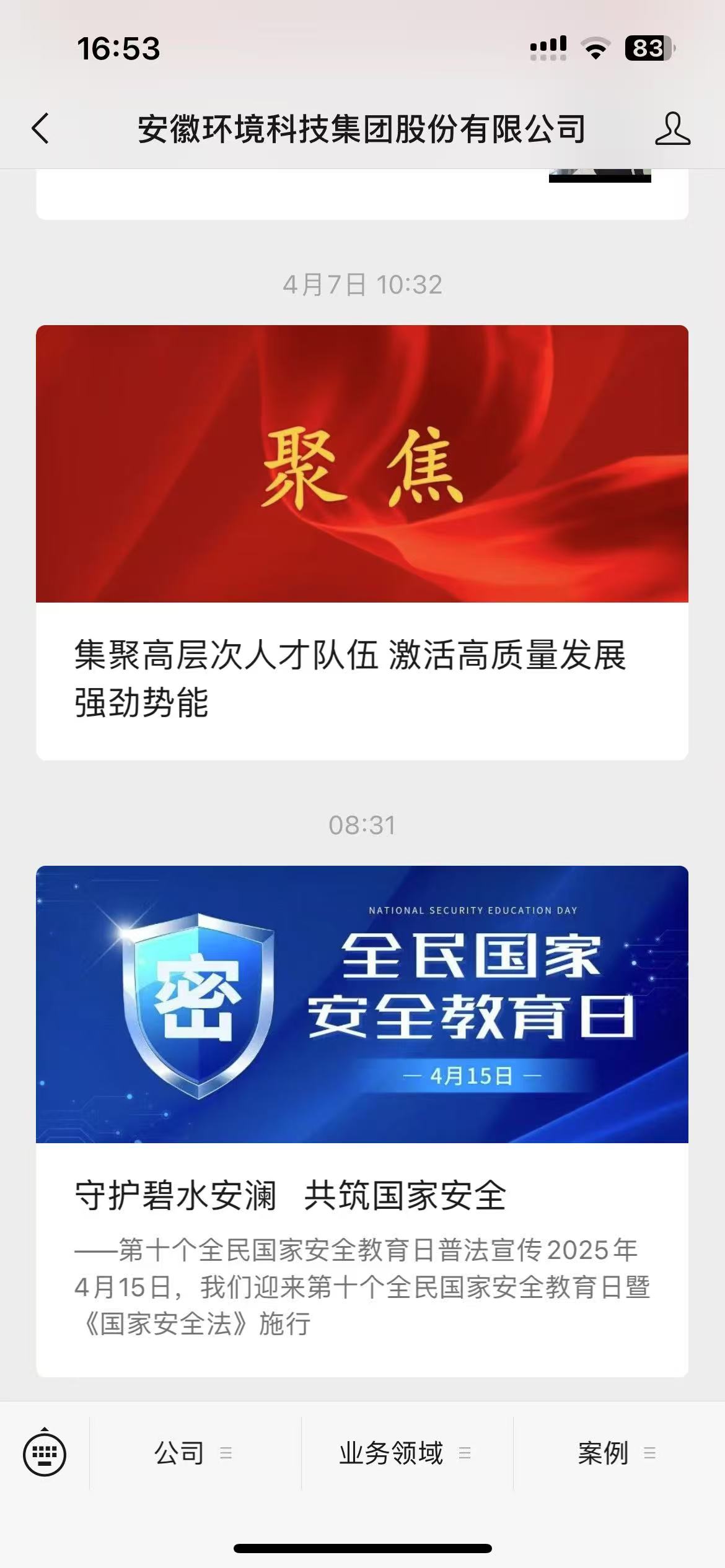 地產(chǎn)集團(tuán)微信群每日推送國家安全知識圖解、微視頻,以“碎片化學(xué)習(xí)”提升普法滲透力;集團(tuán)公司、環(huán)境科技集團(tuán)微信公眾號發(fā)布專題推文《國家安全,你我同行》,通過案例剖析、法條鏈接等形式,生動(dòng)解讀《國家安全法》《反間諜法》;徽鹽金融等子公司組織線上答題活動(dòng),覆蓋全員,以考促學(xué)鞏固國家安全基礎(chǔ)知識,參與率達(dá)100%。