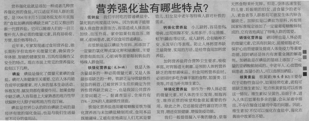 《市場(chǎng)星報(bào)》:營(yíng)養(yǎng)強(qiáng)化鹽有哪些特點(diǎn)