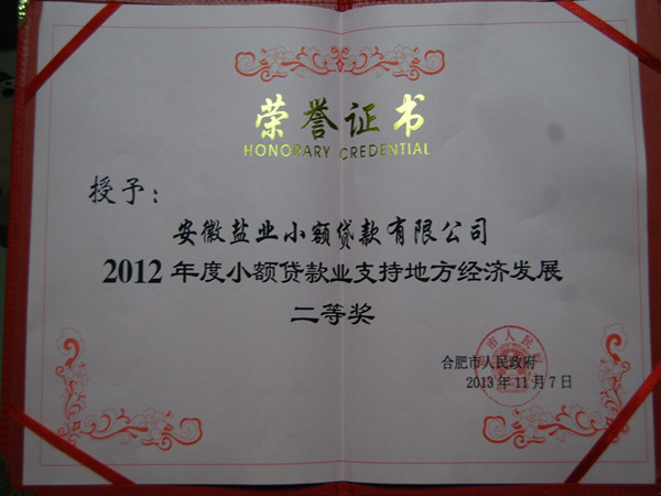 近日,安徽鹽業(yè)小額貸款有限公司榮獲合肥市“2012年度小額貸款業(yè)支持地方經(jīng)濟(jì)發(fā)展”二等獎(jiǎng)。