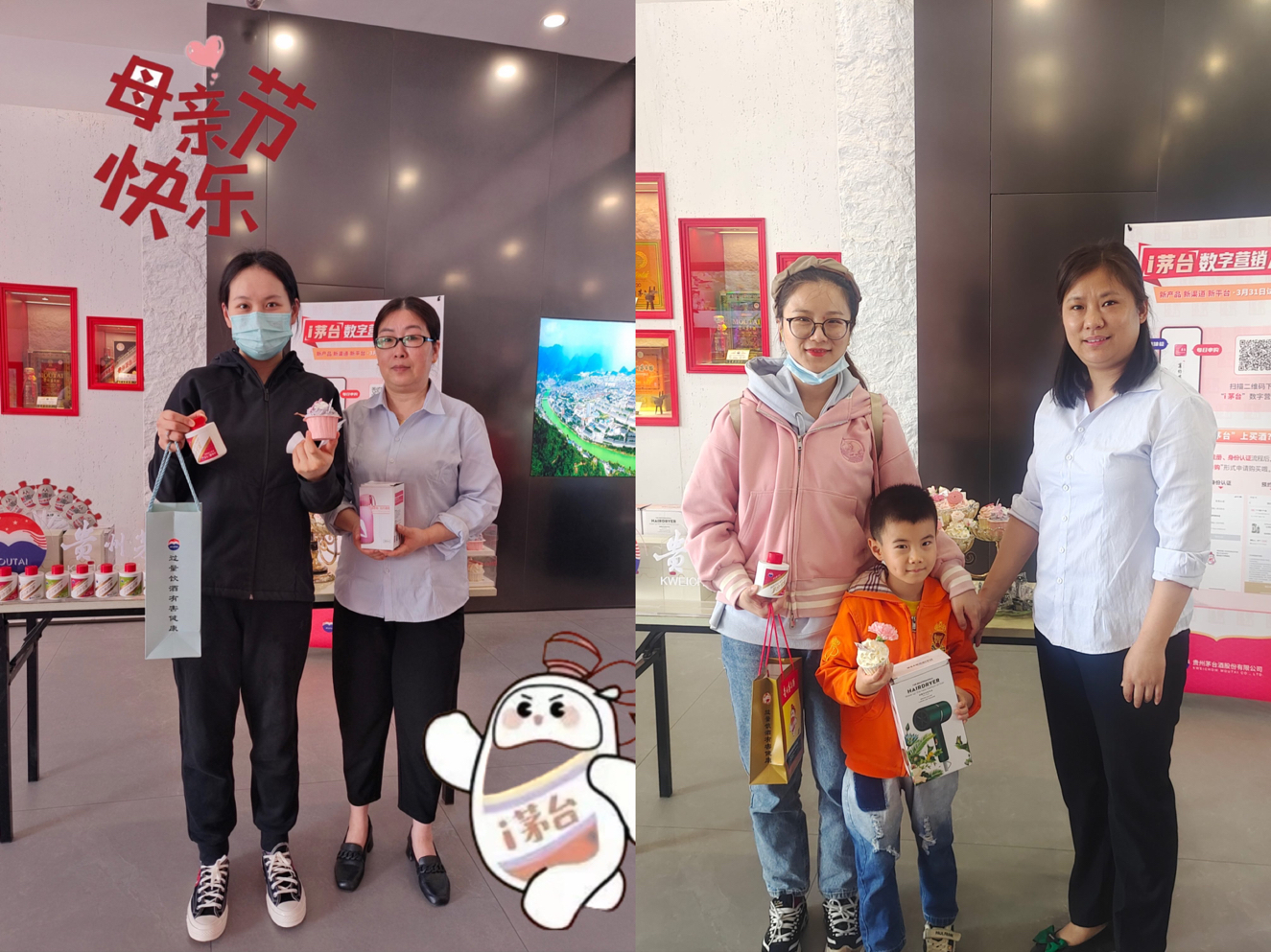 活動期間,我們?yōu)檫M店客戶準備了精美蛋糕、水杯等,并為進店的媽媽們贈送一份茅臺冰淇淋,希望把最美好的祝福送給每一位女性客戶,讓她們都能感受到濃厚溫馨的節(jié)日氛圍。進店參與活動的每一位母親都帶著開心的笑容,在這個屬于她們的節(jié)日里,安徽鹽業(yè)商貿有限公司全體員工真誠的祝福所有母親健康快樂、青春美麗。