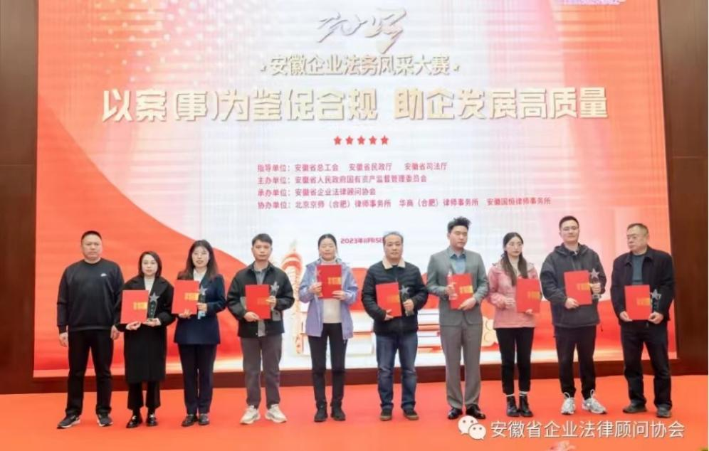 2023年11月15日上午,由安徽省總工會(huì)、安徽省民政廳、安徽省司法廳指導(dǎo),安徽省人民政府國(guó)有資產(chǎn)監(jiān)督管理委員會(huì)主辦,安徽省企業(yè)法律顧問(wèn)協(xié)會(huì)承辦的“2023年安徽企業(yè)法務(wù)風(fēng)采大賽”在合肥成功舉辦。本次大賽主題是“以案(事)為鑒促合規(guī),助企發(fā)展高質(zhì)量”,共征集征文、PPT、微視頻等法治作品155篇(部)。