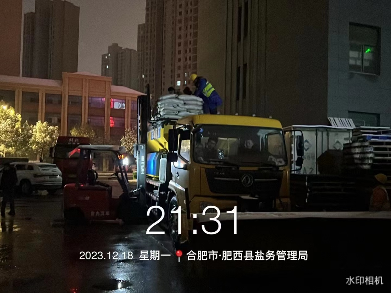 12月18日凌晨,合肥突降大雪,嚴重影響道路交通暢通安全。合肥鹽業(yè)作為全市食鹽和融雪鹽產(chǎn)品供應的“主渠道”,切實扛起國企責任擔當、發(fā)揮“頂梁柱”作用。合肥一市五縣按照市公司黨委“保障融雪鹽應急預案”的統(tǒng)一安排,確保全區(qū)交通管網(wǎng)、市政、街道、社區(qū)等融雪鹽供應。要求全區(qū)職工“24小時”嚴陣以待,保障人民生命財產(chǎn)安全。