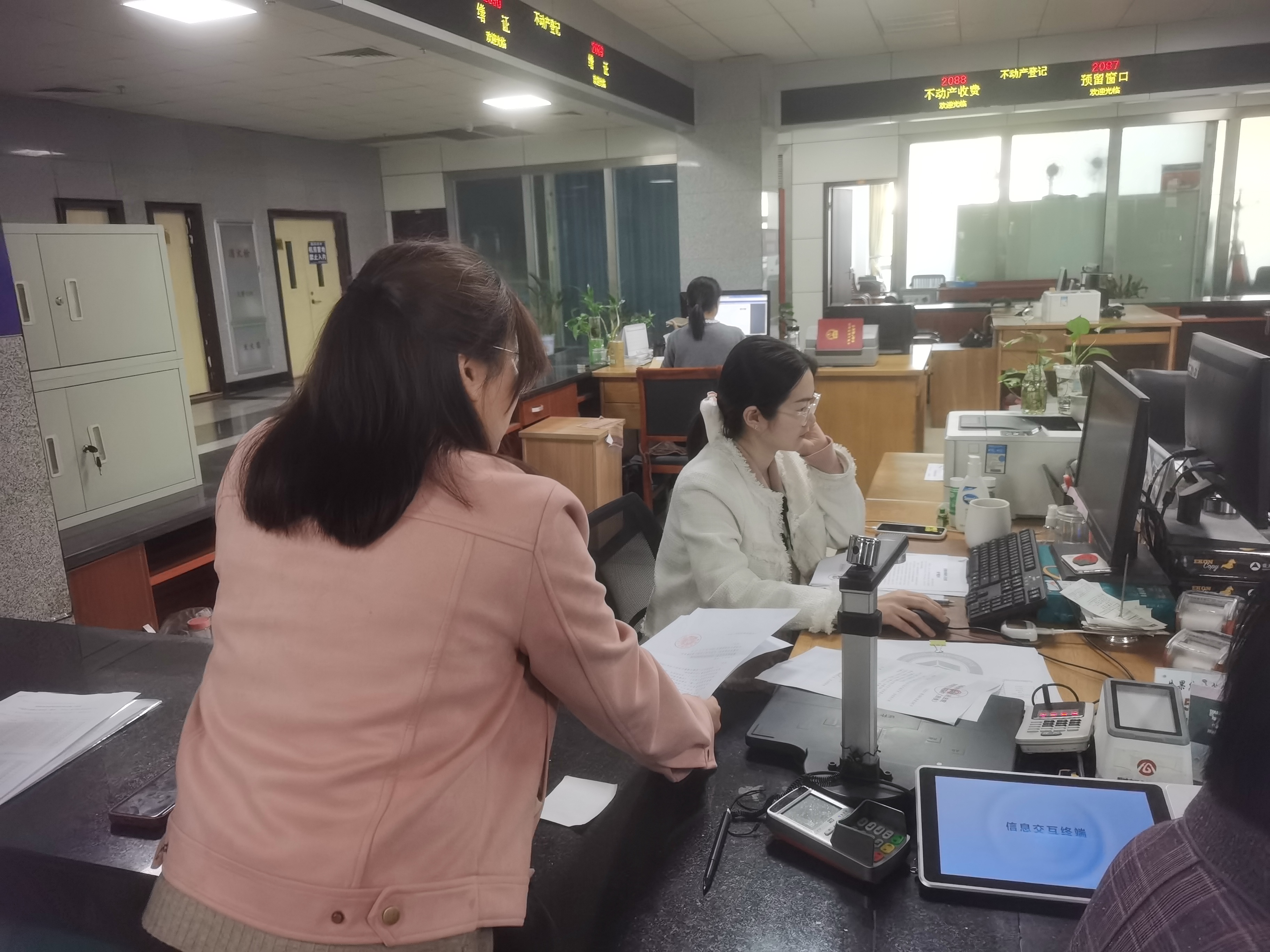 圖為小貸公司清收人員和律師在桐城市不動產中心排查被執(zhí)行人財產信息。