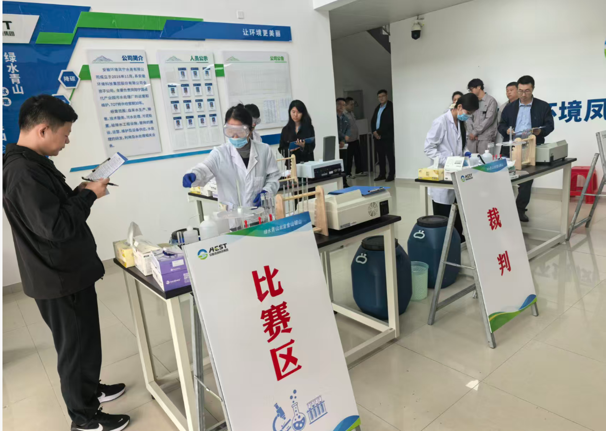 2025年10月17日,由安徽省生態(tài)環(huán)境產(chǎn)業(yè)集團(tuán)有限公司主辦、安徽環(huán)境科技集團(tuán)承辦的“2025年污水化驗(yàn)技能競(jìng)賽”在鳳陽(yáng)寧國(guó)現(xiàn)代產(chǎn)業(yè)園污水處理廠成功舉辦。本次競(jìng)賽以“水質(zhì)氨氮測(cè)定(納氏試劑分光光度法)”為核心內(nèi)容,通過(guò)模擬實(shí)操全面檢驗(yàn)化驗(yàn)人員的專(zhuān)業(yè)技能、規(guī)范意識(shí)和數(shù)據(jù)處理能力,是集團(tuán)公司加強(qiáng)產(chǎn)業(yè)工人隊(duì)伍建設(shè)、提升一線人才素質(zhì)的重要實(shí)踐。集團(tuán)公司黨委副書(shū)記、職工董事、工會(huì)主席張小忠出席活動(dòng)并致辭。